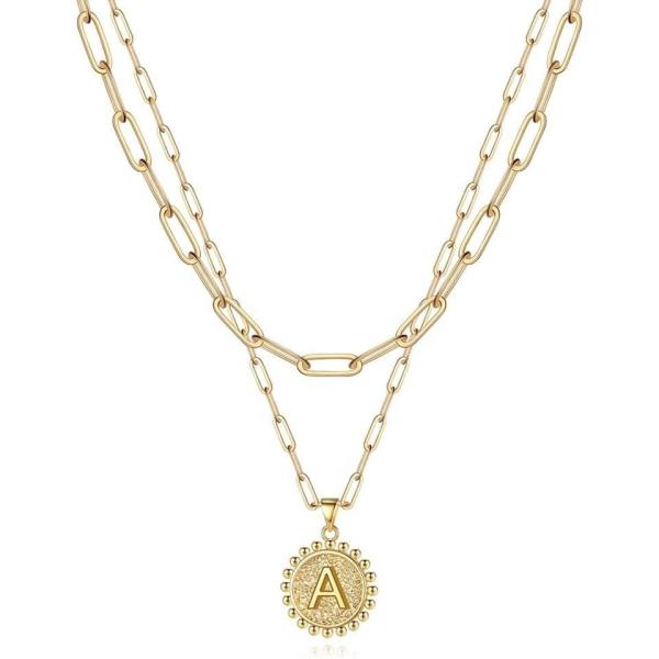 | Name | Handmade Custom Personalised Round Letter 925 Sterling Silver Coin Double Pendant Paperclip Stacking Necklace for Women |